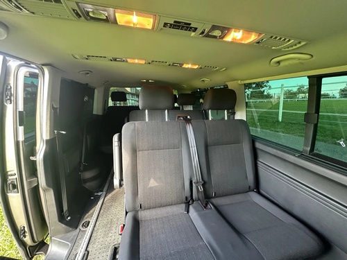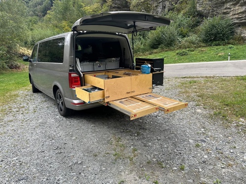 Zum Verkauf steht ein gepflegter VW Bus T6 Caravelle 2.0 TDI DSG 4Motion mit langem Radstand und umfangreicher Ausstattung:; ; ; - 9 Sitzplätze (Taxi-Bestuhlung in 4 Reihen); - langer Radstand; - Allradantrieb 4x4 (4Motion); - Automatikgetriebe (7 Gang-DSG); - Diesel Euro 6 mit AdBlue; - Farbe: Moja Beige Metallic; - Leistung: 150 PS / 110 kW; - Erstzulassung: 01/2016; - Kilometerstand: 225`000 km; - 4 Türen; - Standheizung (programmierbar); - Zusatzbatterie; - Anhängerkupplung (100 kg Stützlast / 750 kg ungebremst); - 8-fach-bereift; - zwei Dachgrundträger; - Langstreckenfahrzeug; - Werkstattgepflegt, alle Services gemäss VW-Vorgaben wurden druchgeführt, Belege vorhanden; - MFK (10/2025) – wird vor Verkauf gemacht; ; ; Der Camping-Ausbau (siehe Bilder) mit Airline-Schienen und Zubehör kann für CHF 5`000 VB dazu gekauft werden.; DI