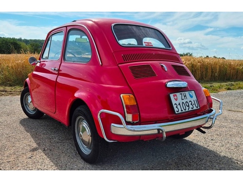 Du kaufst einen klassisch, kultigen Fiat 500L im Originalzustand. Vor ein paar Jahren wurde das Auto restauriert und neu lackiert, die ursprüngliche Farbe war nicht rot. Das Auto ist seit über 25 Jahren in Familienbesitz und sucht nun ein neues Zuhause. Für die kürzlich durchgeführte MFK wurde in der auf Fiat 500 spezialisierten Werkstatt sehr vieles auf Vordermann gebracht, u.a. die komplette Bremsanlage überarbeitet, das Klappverdeck erneuert, ein umfangreicher Service und diverse Abdichtungsarbeiten durchgeführt. Ich verkaufe das Auto zwar ohne Garantie, aber mit sehr gutem Gewissen im Auftrag des Besitzers. Gerne kann das Auto besichtigt und Probegefahren werden, ich zeige auch wie das unsynchronisierte Originalgetriebe zu Schalten ist, es ist gar nicht so schwierig, wie man meint...; ; ; Motor: 499ccm,2-Zyl., Leistung: 18 PS (13,5kW); ; Getriebe: 4-Gänge, unsynchronisiert; ; Vmax: ca. 95 km/h; ; Farbe: rot; ; Interieur: schwarz, Original 500 L; ; Erstzulassung: 11/1969, Zürich (CH-Auto, kein nachträglicher Import); ; Letzte MFK: Jan. 2026, Veteranenfahrzeug; ; Km-Stand: 52100 (laut Tacho).; DI